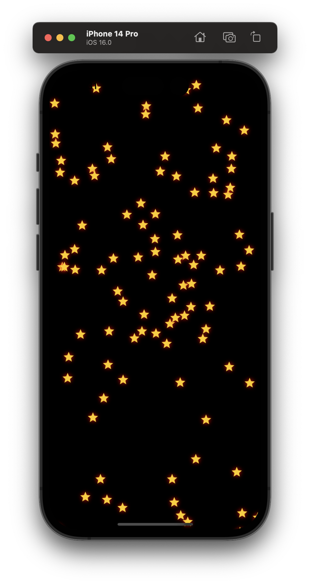 UIView의 애니메이션으로 구현하면 매번 프로퍼티값을 랜덤하게 설정해줄 수 있기 때문에 원하는 애니메이션을 만들 수는 있습니다. 하지만 별이 정말 많아지면, cpu에 부담을 많이 줄 수 있습니다. Core 애니메이션으로 구현하면 매번 프로퍼티값을 랜덤하게 설정할 수가 없어요. 트레이드오프가 있네요... (사실 제가 코어 애니메이션으로 못하고 있는 것 같습니다만.. 아신다면 댓글에 이유를 남겨주세요!..!)
